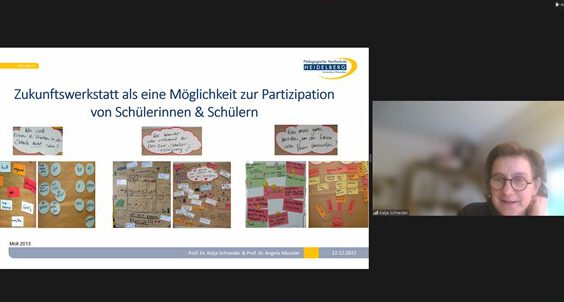Prof. Dr. Katja Schneider von der Pädagogischen Hochschule Heidelberg erläuterte in ihrem Fachvortrag, was Good Practice im Schulalltag heißt und wie die Methode Zukunftswerkstatt funktioniert. Wiebke Helmcke von der Vernetzungsstelle, die das Projekt rund um die VISION MENSA© koordinierte, durfte gemeinsam mit der Agentur visionYOU das Produkt der Zusammenarbeit präsentieren, darunter Spielanleitung, Spielelemente und Materialen zur Umsetzung der Zukunftswerkstatt für Lehrkräfte. In anschließenden Breakoutsessions konnten Fragen geklärt und zur Methodik und Anwendung gefachsimpelt werden. Ausprobieren können die teilnehmenden Pädagoginnen und Pädagogen das Spiel dann gemeinsam mit ihren Schülerinnen und Schülern.