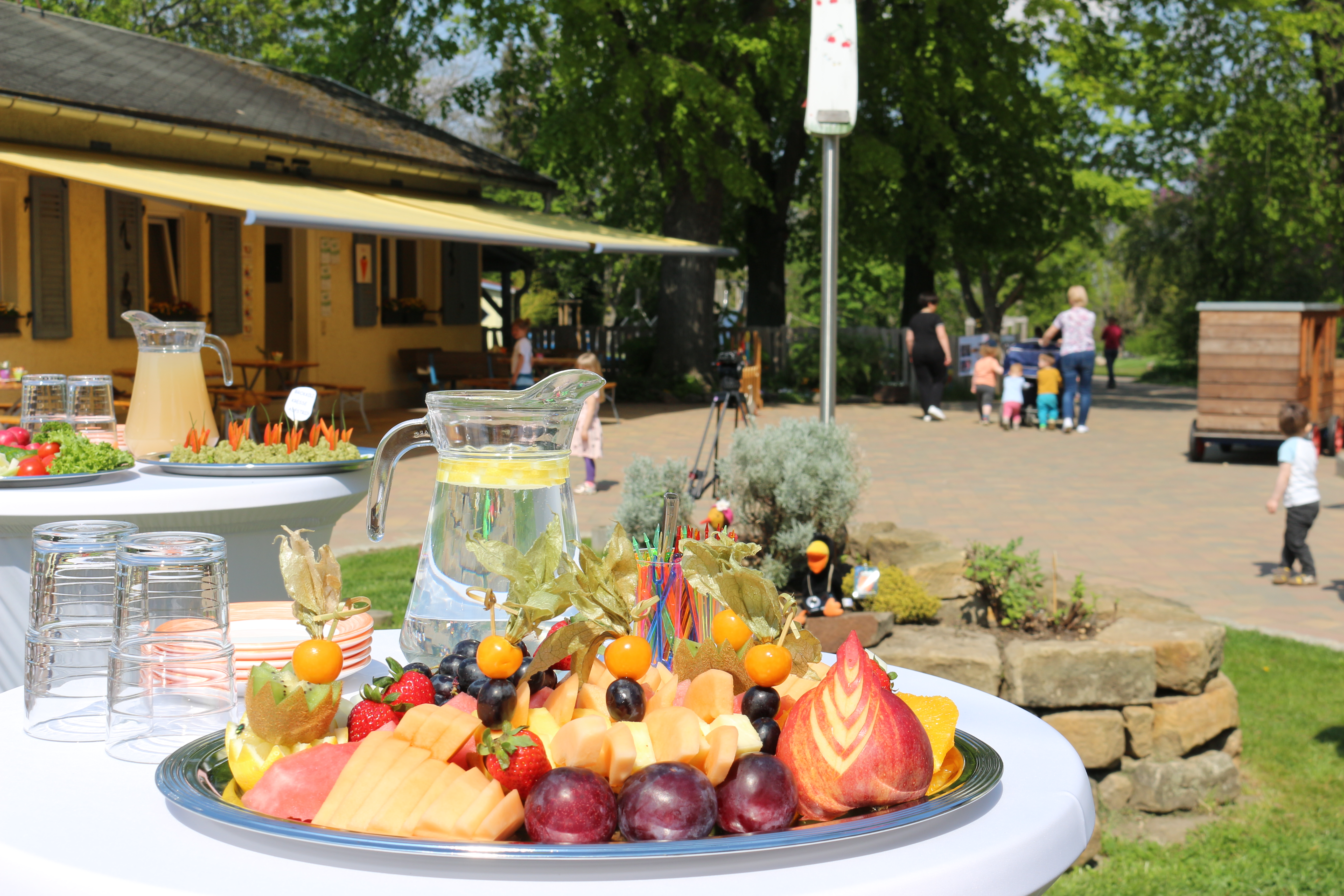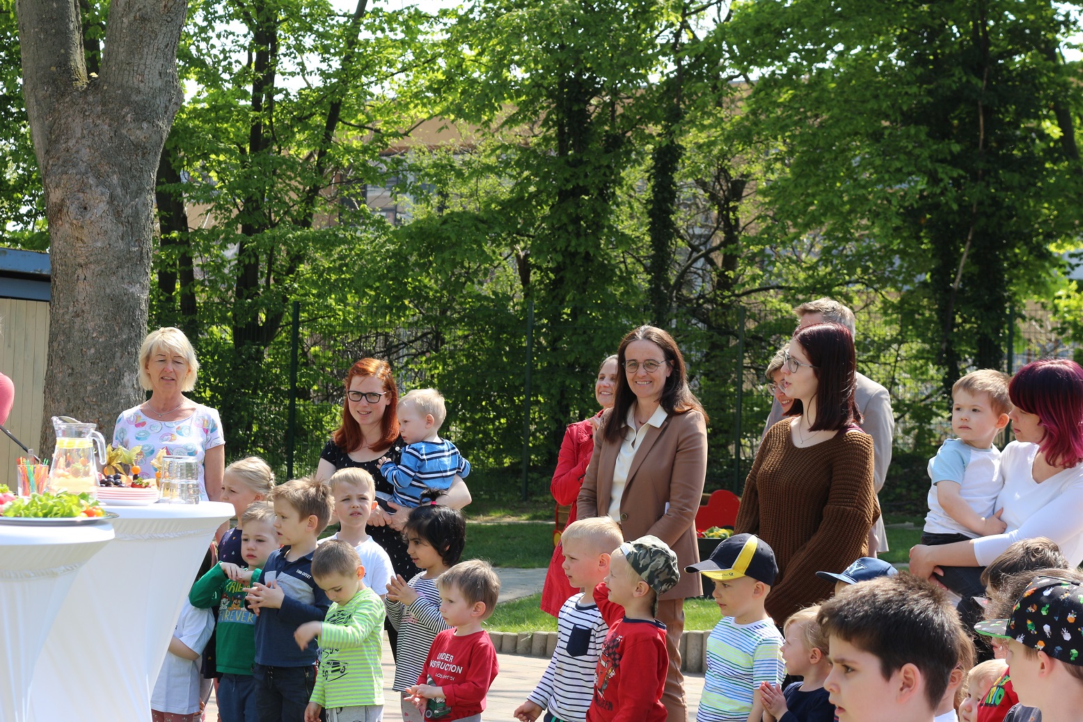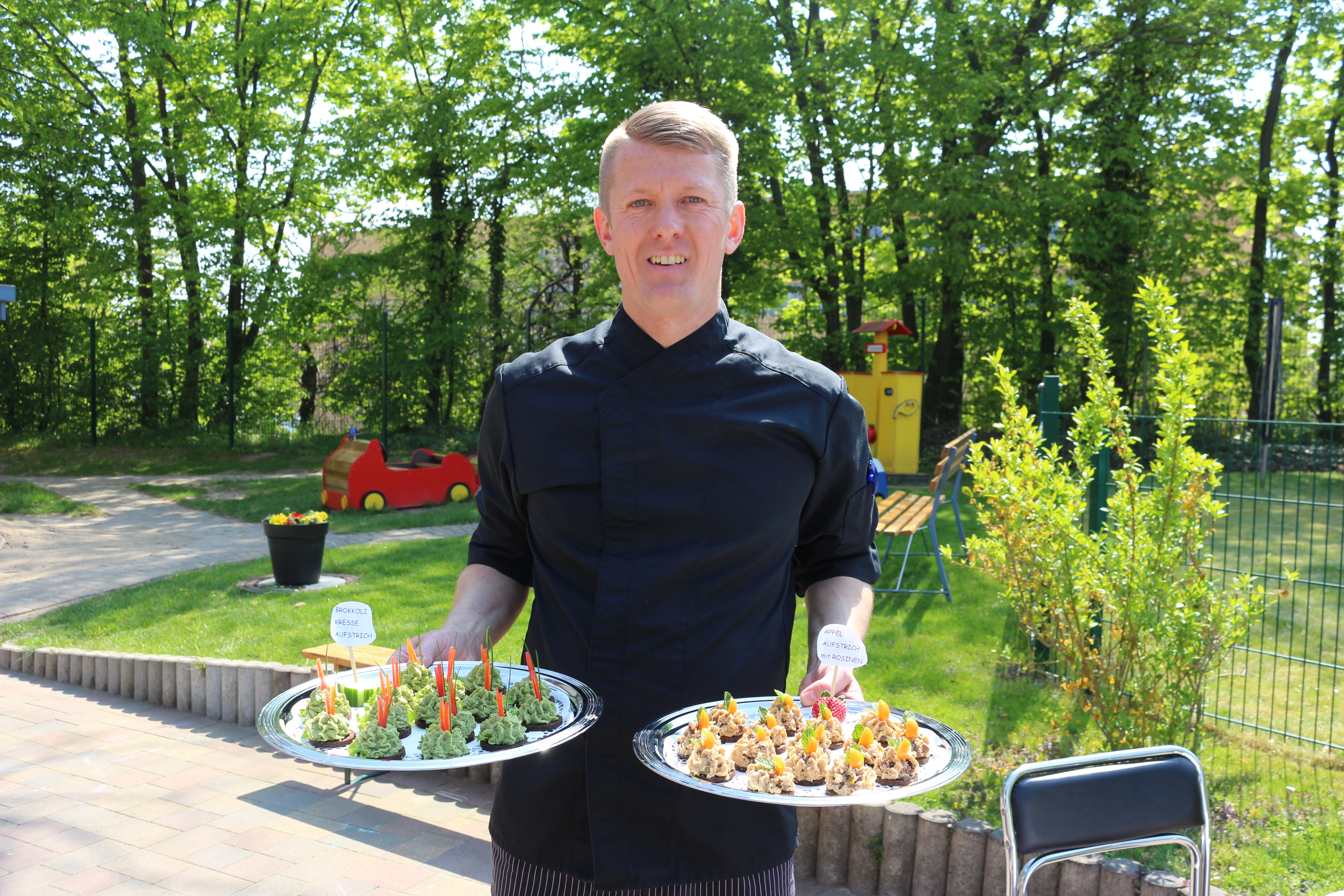 Die geladenen Gäste, darunter die Bürgermeisterin der Stadt Riesa, Kerstin Köhler, wurden gleich zu Beginn von allen Kindern der Einrichtung musikalisch eingestimmt. In einem gemeinsamen Rundgang stellte sich die Kita mit ihrem Ernährungs- und Bildungskonzept vor. Anschließend wurden die von den Kindern selbst zubereiteten vegetarischen Brotaufstriche verkostet. Besonders lecker schmeckte den Kindern der süßliche Apfel-Aufstrich mit Rosinen.