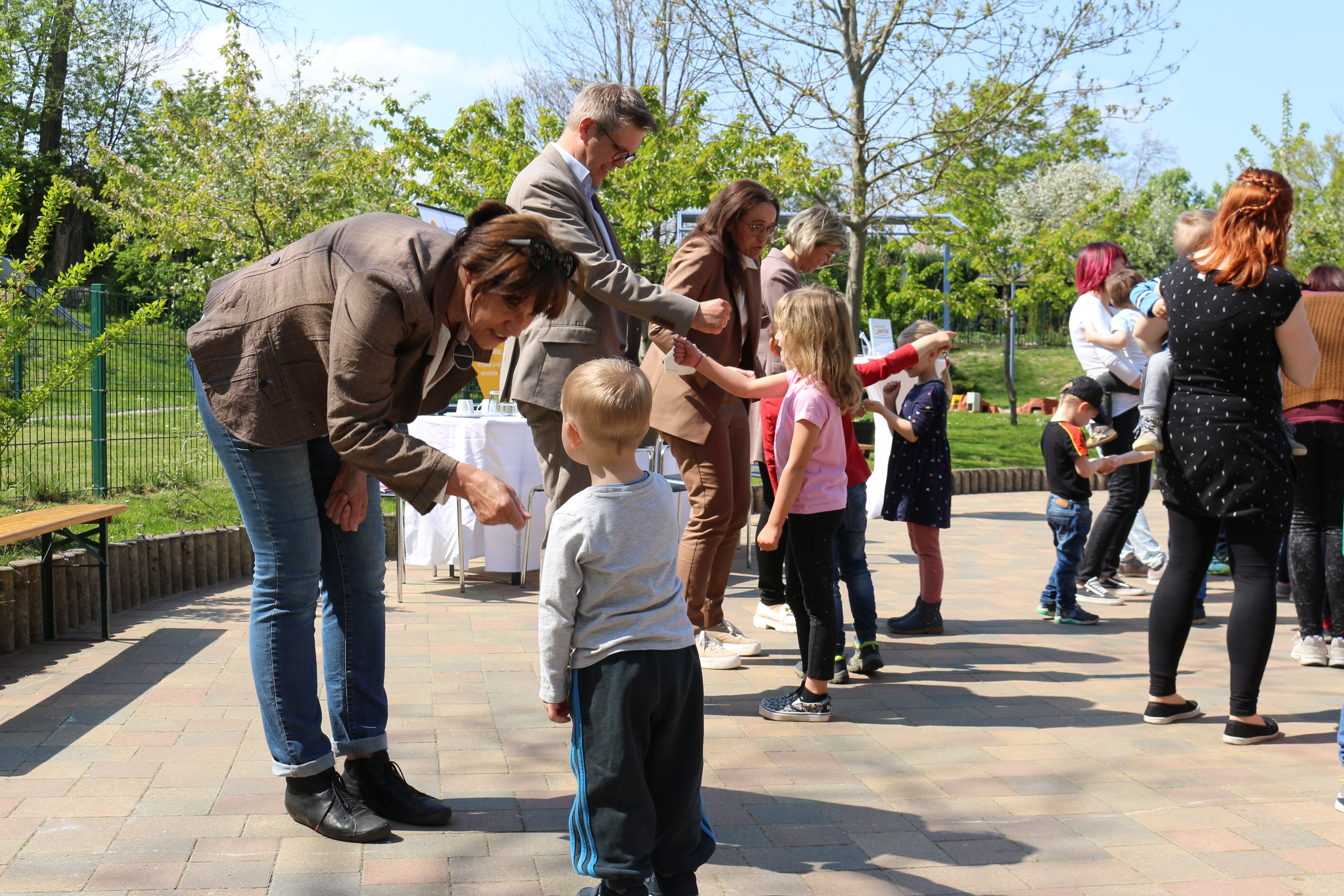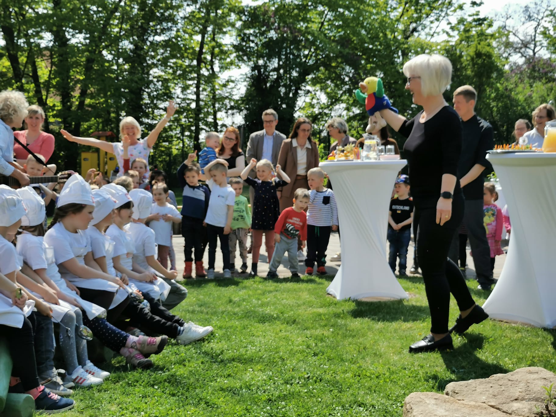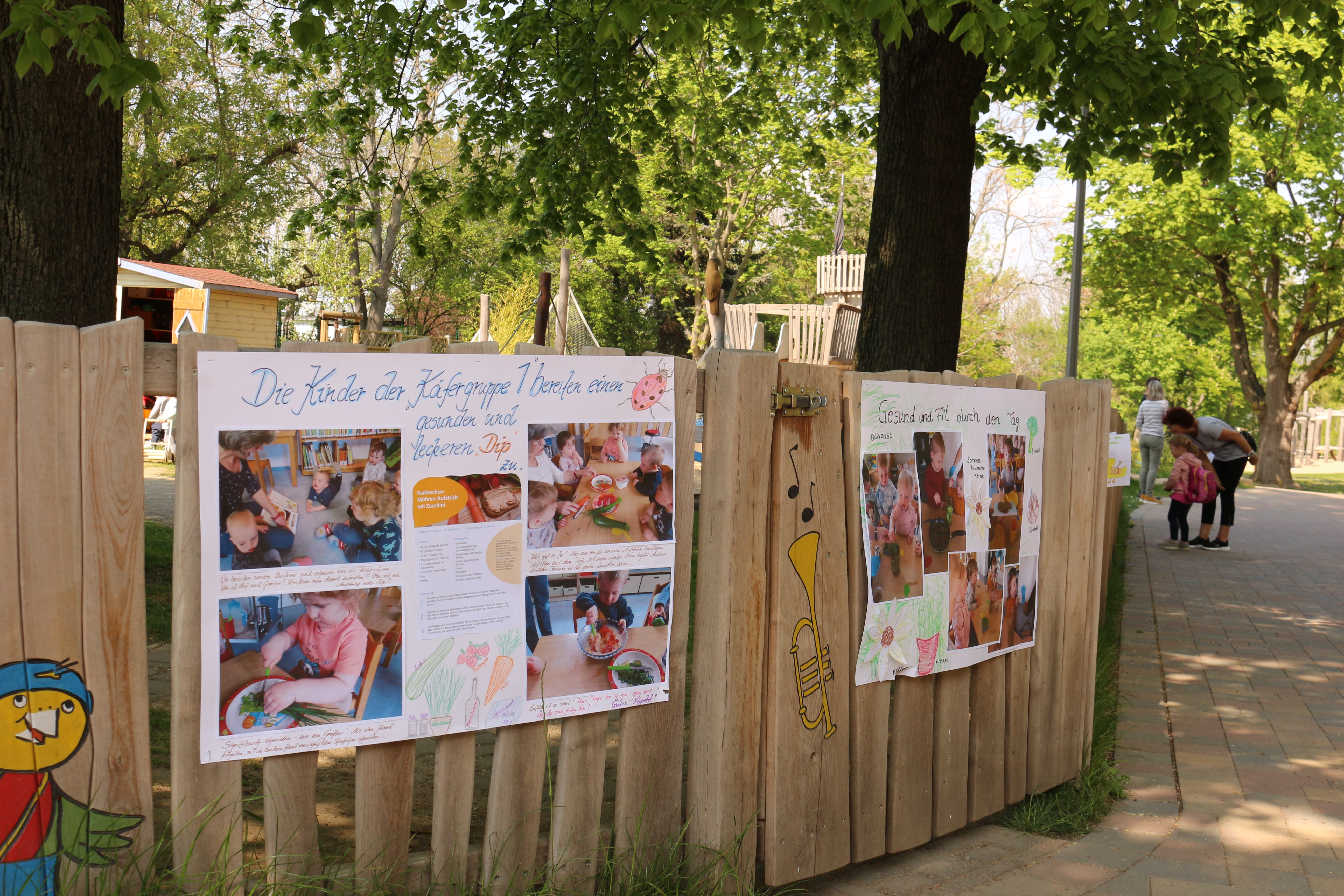 Die geladenen Gäste, darunter die Bürgermeisterin der Stadt Riesa, Kerstin Köhler, wurden gleich zu Beginn von allen Kindern der Einrichtung musikalisch eingestimmt. In einem gemeinsamen Rundgang stellte sich die Kita mit ihrem Ernährungs- und Bildungskonzept vor. Anschließend wurden die von den Kindern selbst zubereiteten vegetarischen Brotaufstriche verkostet. Besonders lecker schmeckte den Kindern der süßliche Apfel-Aufstrich mit Rosinen.